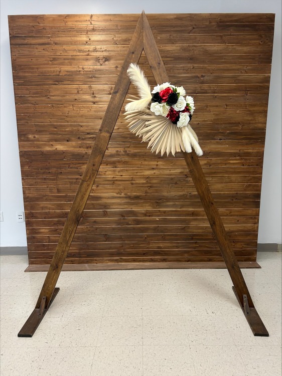 A sturdy A-frame rental: a freestanding, triangular support structure built for stability and easy setup. This classic frame provides reliable support for banners, signs, lights, or lightweight scenery and is ideal for events, photo backdrops, trade shows, and temporary displays. Its simple geometry makes it quick to assemble and forgiving on uneven surfaces, and its open design allows for plenty of customization—drape fabric, hang decorations, or attach signage to suit your event’s style. Compact to transport and simple to store, the A-frame is a practical, no-fuss solution when you need dependable, temporary support.