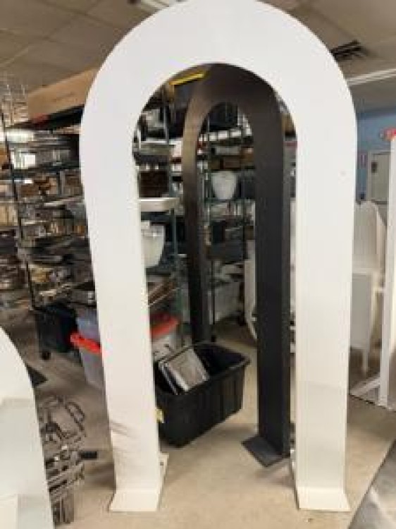 A sleek, rounded arch wall available in your choice of color that instantly elevates any event backdrop or entranceway; freestanding and sturdy, it creates a clean, modern focal point for ceremonies, photo ops, trade show displays, or stage sets without drawing attention away from your décor. Easy to position and pair with flowers, drapery, signage, or lighting, this versatile arch adds height and architectural interest while keeping sightlines open—perfect for framing moments, directing foot traffic, or anchoring a themed vignette.