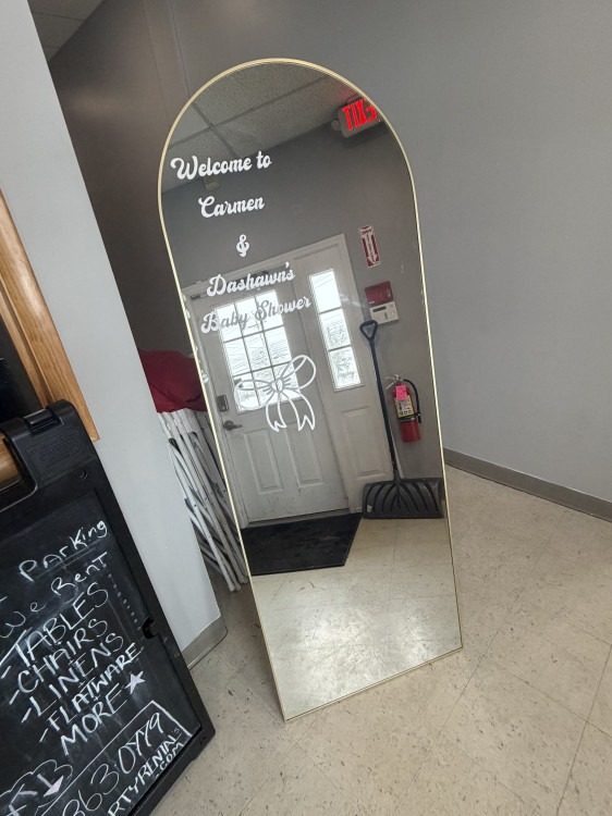 A sleek, full-length mirror perfect for rentals where style and functionality matter. This mirror offers a clear, true reflection ideal for dressing rooms, photo booth setups, event entrances, or anywhere guests want to check their appearance. Its clean lines and unobtrusive design let it blend with a wide range of décor—from casual gatherings to formal events—while providing a polished, professional look. Easy to position and use, it’s a simple, elegant addition that helps guests feel confident and camera-ready.