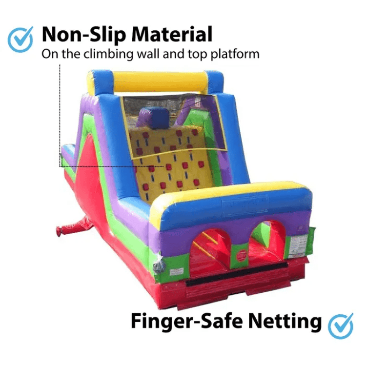 Designed with safety in mind, this inflatable obstacle course is made with high-quality materials and sturdy construction. It is also fully enclosed with safety netting and has secure anchoring points for added stability.